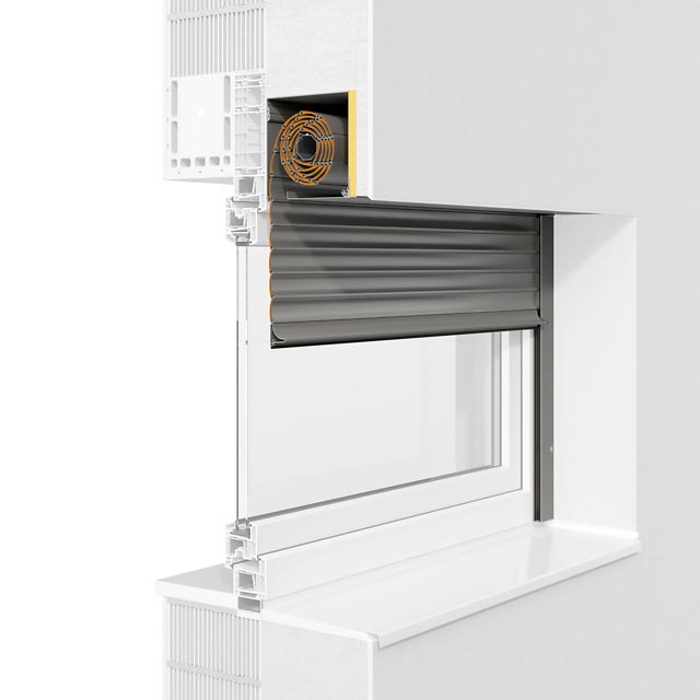 Das Rollladensystem passt sich in die Fassade ein und kann wahlweise mit eckiger oder fünfeckiger Frontblende verwendet werden.